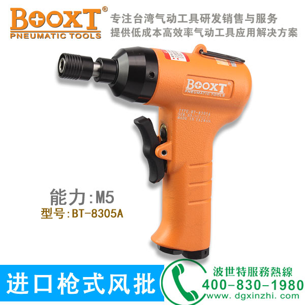 東莞市強勁五金工具有限公司是臺灣BOOXT波世特氣動工具品牌總部,11年工業氣動工具研發銷售經驗,對于槍式風批有豐富的現場經驗和現場技術,真正為有需要的客戶解決問題。免費咨詢熱線:4008301980