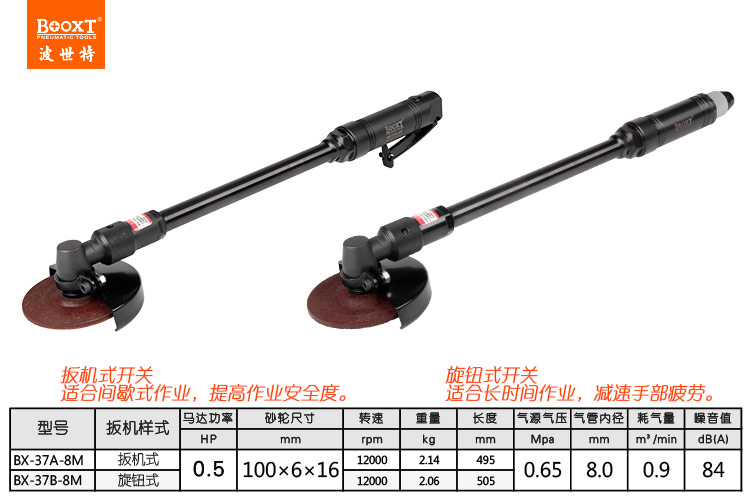 東莞市強勁五金工具有限公司提供臺灣BOOXT波世特品牌氣動工具,加長氣動打磨機BX-37A-8M廠家直銷,首件享特價。咨詢熱線:4008301980