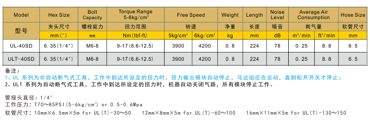 油壓脈沖氣動螺絲刀UL-40SD/ULT-40SD