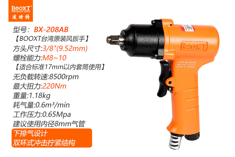 東莞市強勁五金工具有限公司提供臺灣BOOXT波世特品牌氣動工具,氣動扳手BX-208AB廠家直銷,首件享特價。咨詢熱線:4008301980