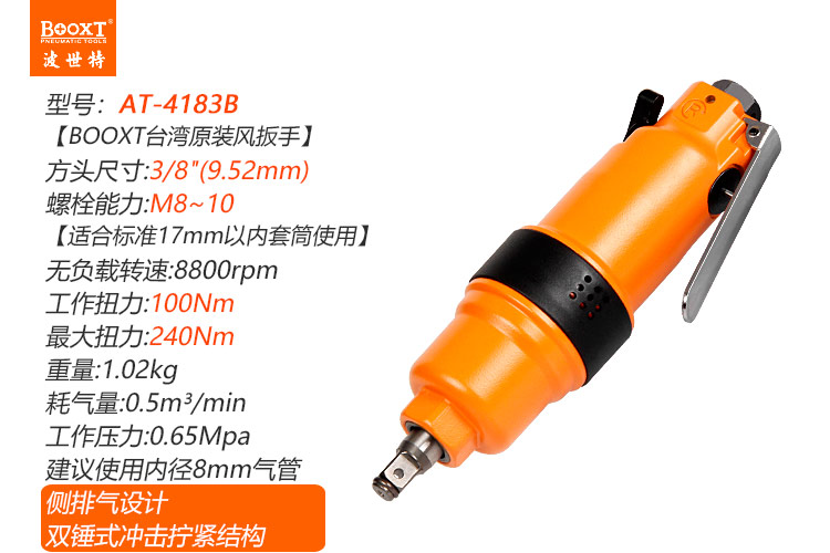 東莞市強勁五金工具有限公司提供臺灣BOOXT波世特品牌氣動工具,風動扳手AT-4183B廠家直銷,首件享特價。咨詢熱線:4008301980