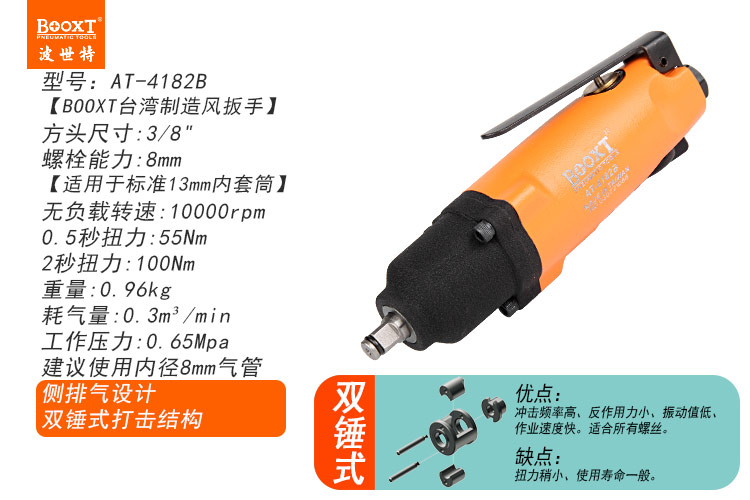 東莞市強(qiáng)勁五金工具有限公司提供臺(tái)灣BOOXT波世特品牌氣動(dòng)工具,直柄迷你氣動(dòng)扳手AT-4182B廠家直銷,首件享特價(jià)。咨詢熱線:4008301980