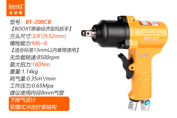 東莞市強勁五金工具有限公司提供臺灣BOOXT波世特品牌氣動工具,氣動沖擊扳手BT-208CB廠家直銷,首件享特價。咨詢熱線:4008301980