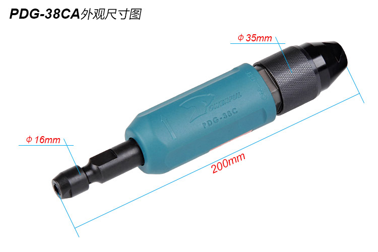 • 產品參數: 夾頭能力:M3,M6 【標配M6】 馬達功率:0.38HP 空載轉速:22000rpm 耗 氣 量:0.45m3/min 全 長:200mm 重 量 : 0.50kg 【旋鈕開關/塑鋼外殼】