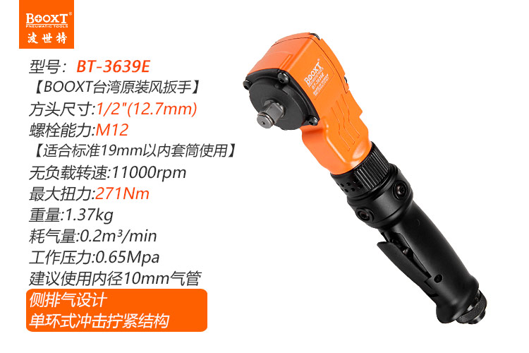 東莞市強勁五金工具有限公司提供臺灣BOOXT波世特品牌氣動工具,直角小風炮BT-3639E廠家直銷,首件享特價。咨詢熱線:4008301980