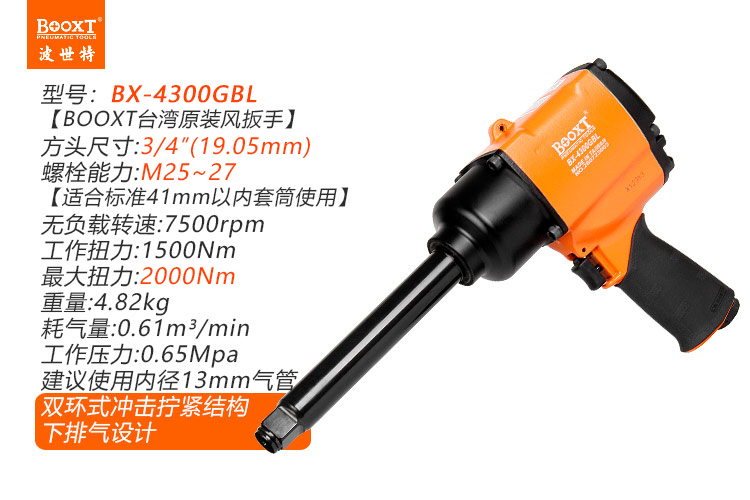 東莞市強勁五金工具有限公司提供臺灣BOOXT波世特品牌氣動工具,加長軸氣動扳手BX-4300GBL廠家直銷,首件享特價。咨詢熱線:4008301980