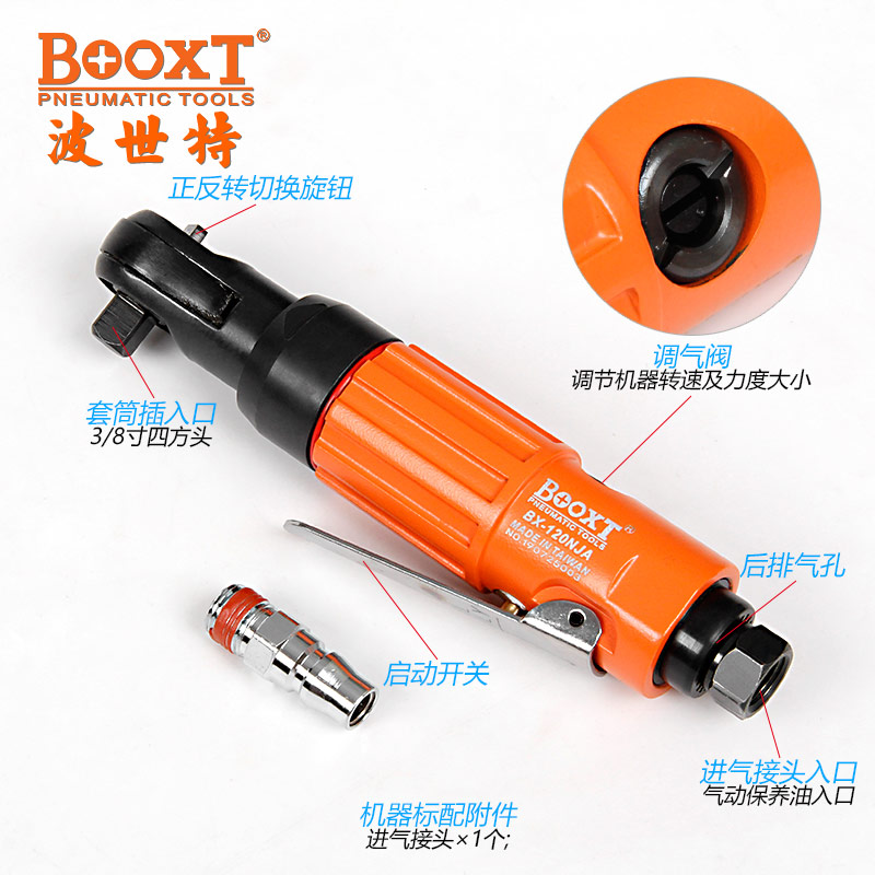 東莞市強勁五金工具有限公司提供臺灣BOOXT波世特品牌氣動工具,小飛氣動棘輪扳手BX-120NJA廠家直銷,首件享特價。咨詢熱線:4008301980