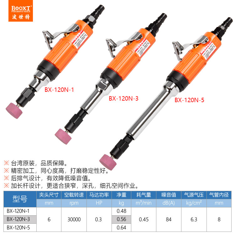 東莞市強勁五金工具有限公司提供臺灣BOOXT波世特品牌氣動工具,加長氣動直磨機BX-120N-3廠家直銷,首件享特價。咨詢熱線:4008301980