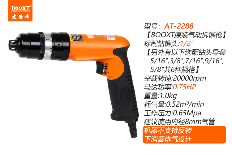 東莞市強勁五金工具有限公司提供臺灣BOOXT波世特品牌氣動工具,氣動鉚釘拆卸銑平鉆AT-2288廠家直銷,首件享特價。咨詢熱線:4008301980