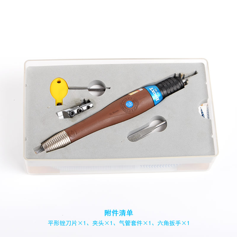 • 產品參數: 夾頭尺寸:3mm;行程:0.3mm;沖程數:55000bpm;長度:190mm;重量:0.15kg;耗氣量:0.21立方米/分鐘;推薦氣管尺寸:5mm